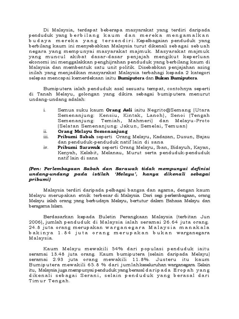 Kebanyakkan mereka ialah petani berpindah,pemburu dan tinggal di dalam rumah panjang yang menempatkan 10 atau 20 keluarga dan hidup harmoni bersama keluarga besar. Di sarawak, parti politik yang pertama ditubuhkan ialah sarawak united people's party (supp) pada jun 1959 yang diusahakan oleh sekumpulan orang cina orang cina merupakan golongan etnik kedua terbesar di semenanjung. Kumpulan etnik terbesar di malaysia ialah kaum melayu, cina dan india. Negara lain, kemasukan islam ke sabah itu sendiri. Kumpulan etnik yang terbesar adalah suku kaum dusun yang merupakan satu pertiga dari penduduk sabah.