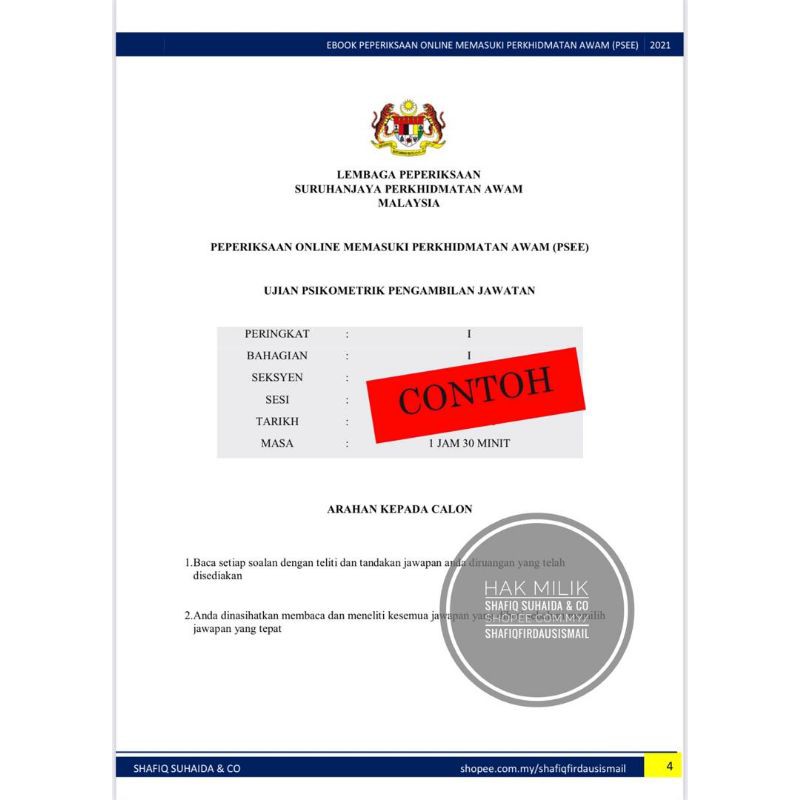 Contoh rujukan soalan ujian psikometrik, peperiksaan online memasuki perkhidmatan awam psee.