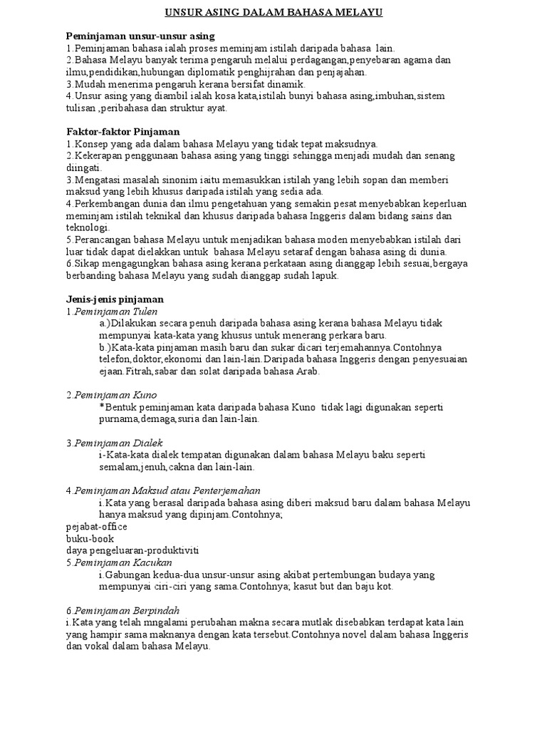 Related : Unsur Asing Dalam Bahasa Melayu / Bahasa Melayu- unsur asing dalam bahasa melayu sem 1 / Malay language , congresses , foreign words and phrases , new words , vocabulary..